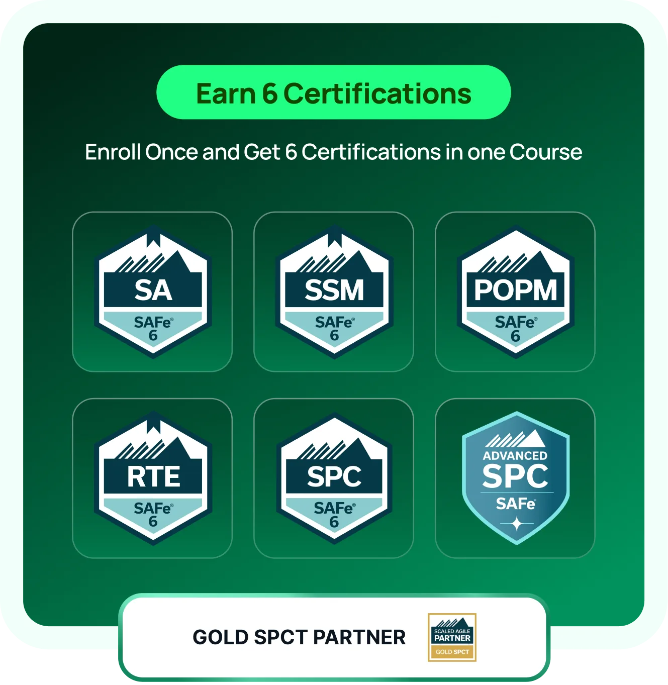 - Multi-Certification Accelerator: Fast-track your credentials with a bundled, progression-based model across SA, SSM, POPM, RTE, SPC, and ASPC — instead of enrolling in isolated courses.